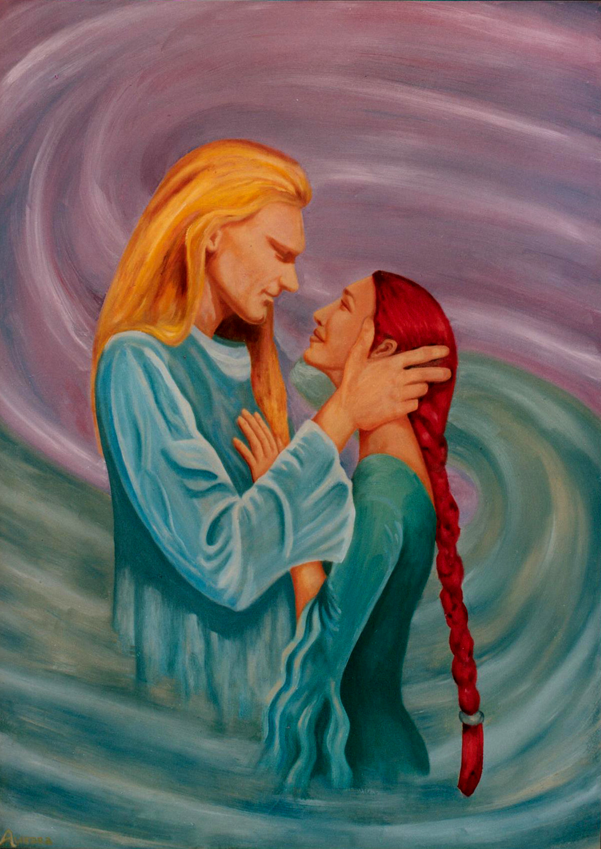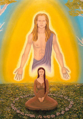 I chose your painting to be the winner of the Spiritual Art Hyve. I was immediately moved by it. Only now I discover your website and I''m finding out with amazement and astonishment how much meaning is behind it. I think your work is truly wonderful. Some of the images conjure up an ancient feeling and are the kind of images I adored as a child. For example the Fairies in the lotus. The prince and princess. The forest with the grass and the flowers. The image of Jesus. The woman with the dress and her flowing hair. Really they are images I have forgotten or lost or maybe I threw them away thinking they were just fantasy. Just like I did with my longing for my Twin Soul. Because I feel so overwhelmed with feelings of loneliness en longing when I think of him.  You have experienced it in your life. You know he is real, that he exists. I never experienced it. I am always afraid it is just a dream and it can never come true. Your work reconnects me with that deepest, innermost longing. There is nothing I want more in my life than to meet him. Your work and your story gives me hope it is possible. That that kind of love is real. That Fairytales are not nonsense but deep truths and that my dreams can come true.  Maybe the spontaneous choosing of your painting was a sign of my Twin Soul, that he is thinking about me and coming closer. Thank you, Jennifer, for all this beauty. For sharing your story. For sharing your happiness and pain.  I wish you love  Nynke